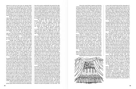 The general public is not as excited about this “innovation” as the tech-lords. Most would prefer another metaphysical mutation to the A.I. ghoul Zuck is building. Through the novel’s central conflict—can the brothers overcome their programming and find love?—Houellbecq hints that there is another way out: a return to Romanticism. Recently, this idea has been gaining steam. In 2023 Ted Gioia wrote an article that describes how the original Romantic movements formed as a response to the Industrial Revolution and the Enlightenment. Just as artists and Luddites chose humanity over technology and rationality back then, we could do the same today. This idea is not as far-fetched as it sounds . How many of your friends are content with their relationship to technology? Zero?
