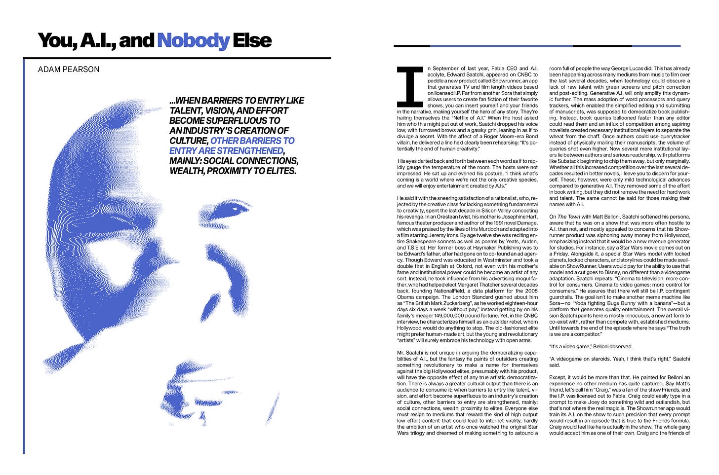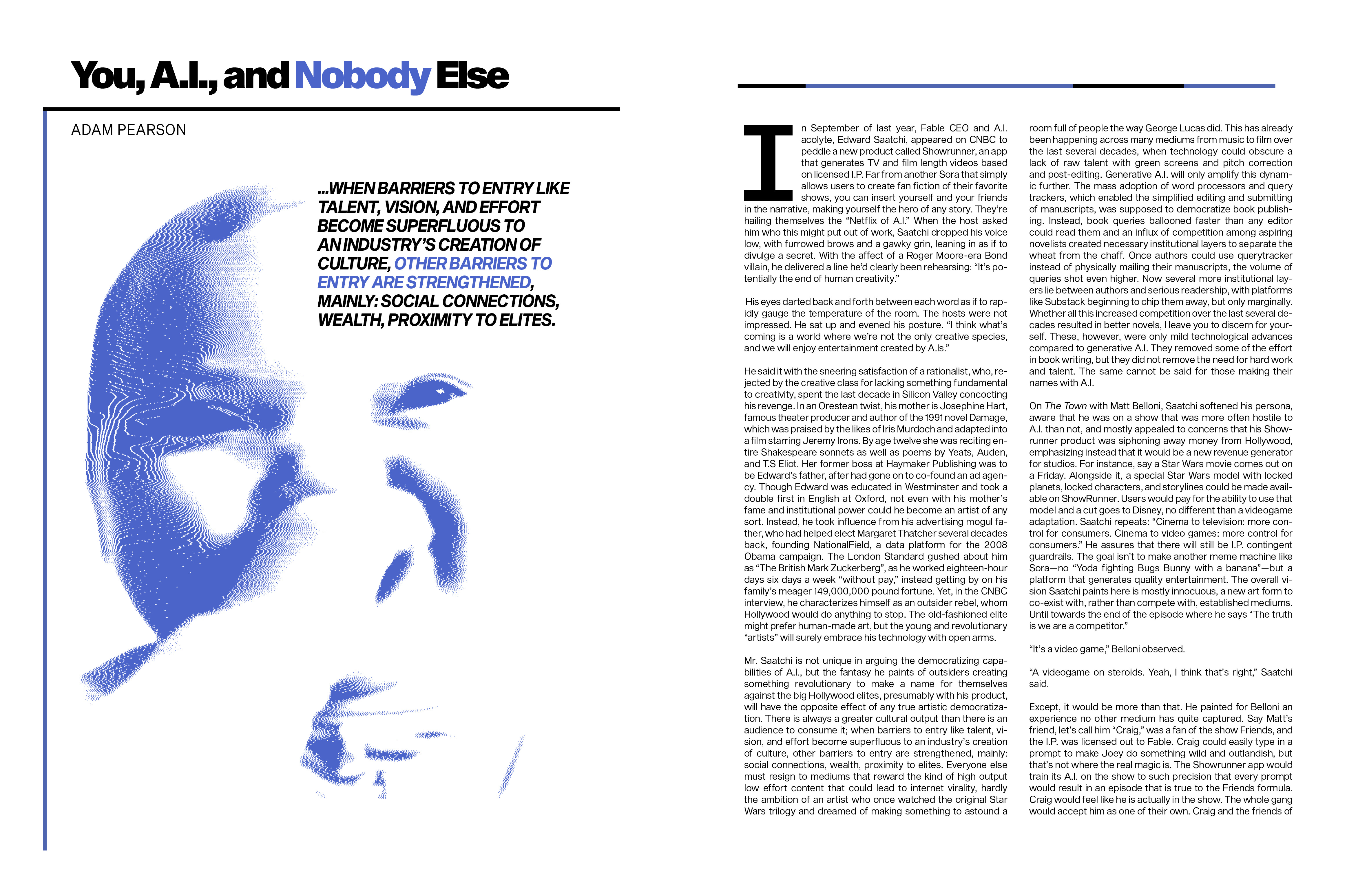 “You, A.I., & Nobody Else,” an essay from Adam Pearson.