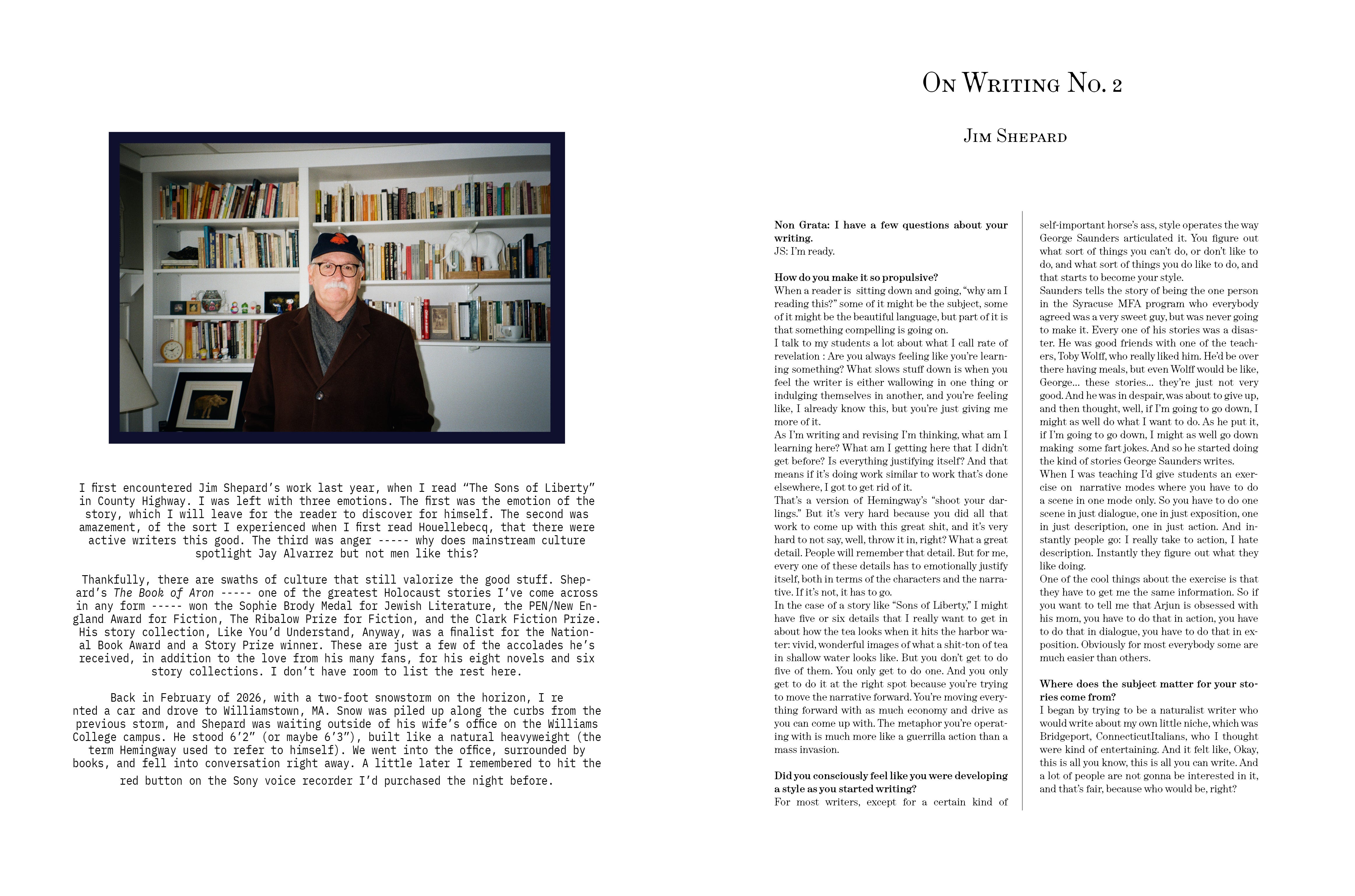 “On Writing No. 2,” an interview with Jim Shepard.