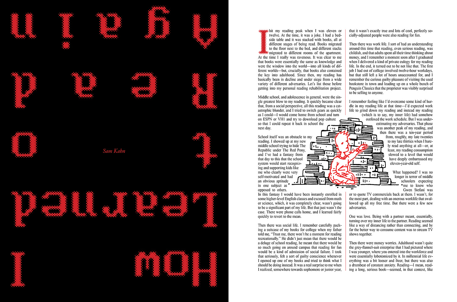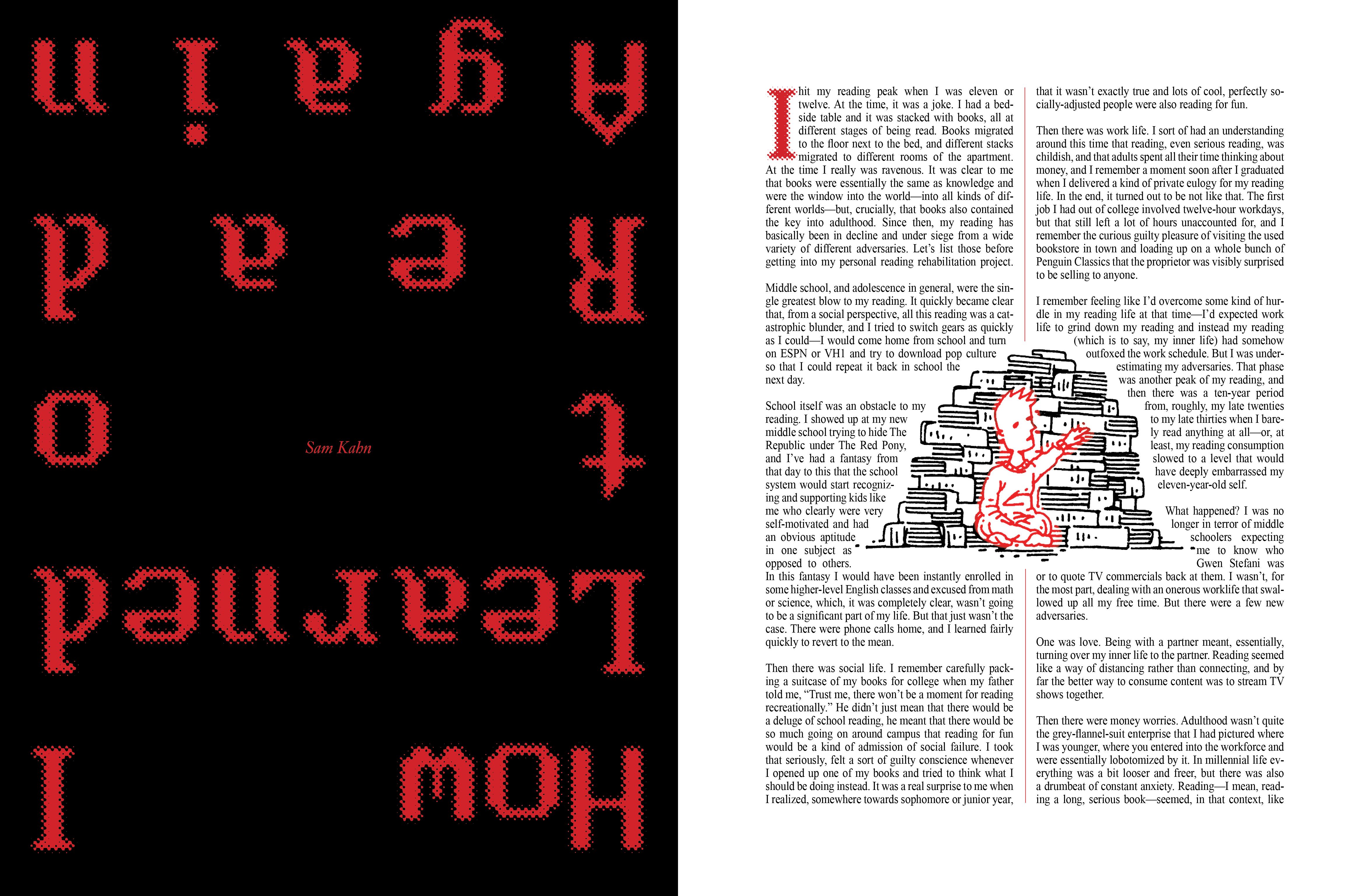 “How I Learned to Read Again,” an essay from Sam Kahn.